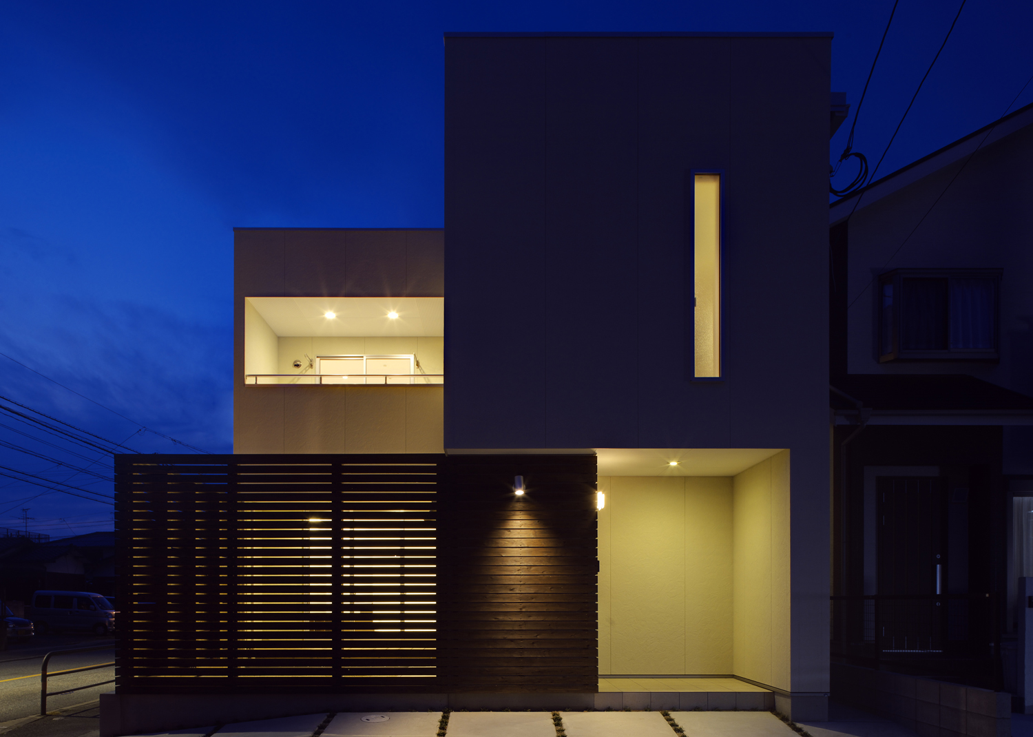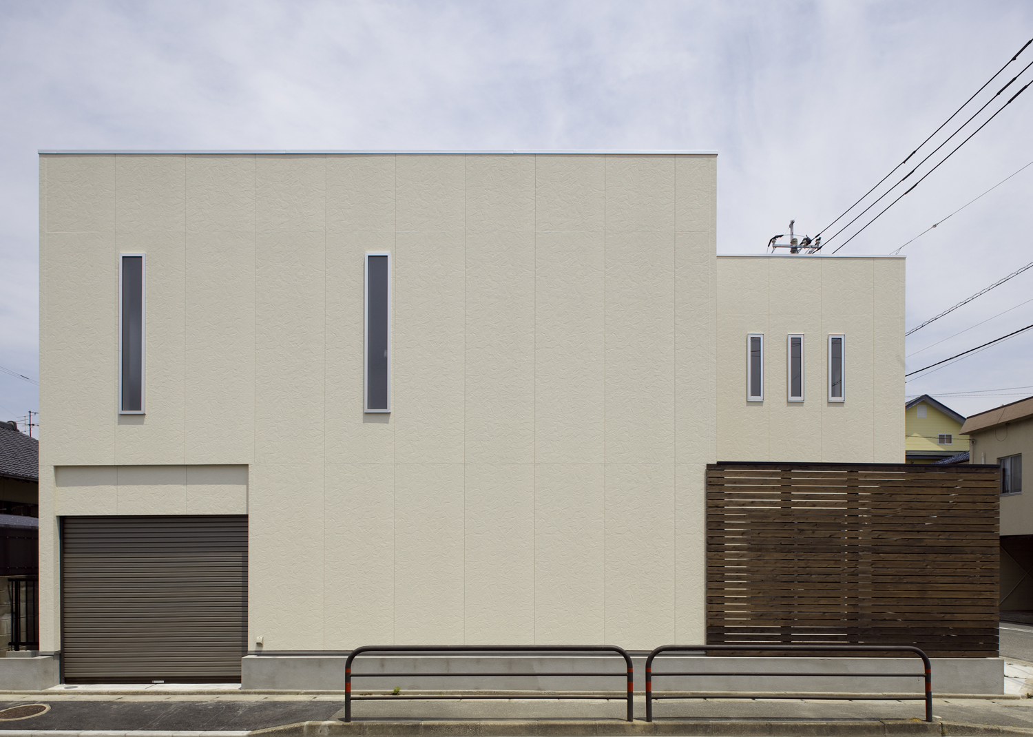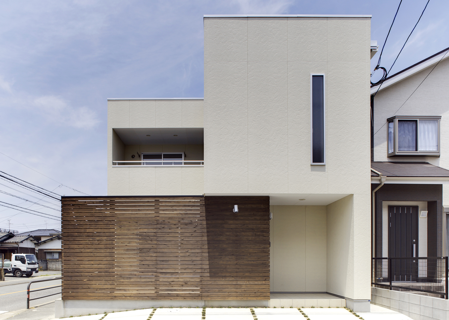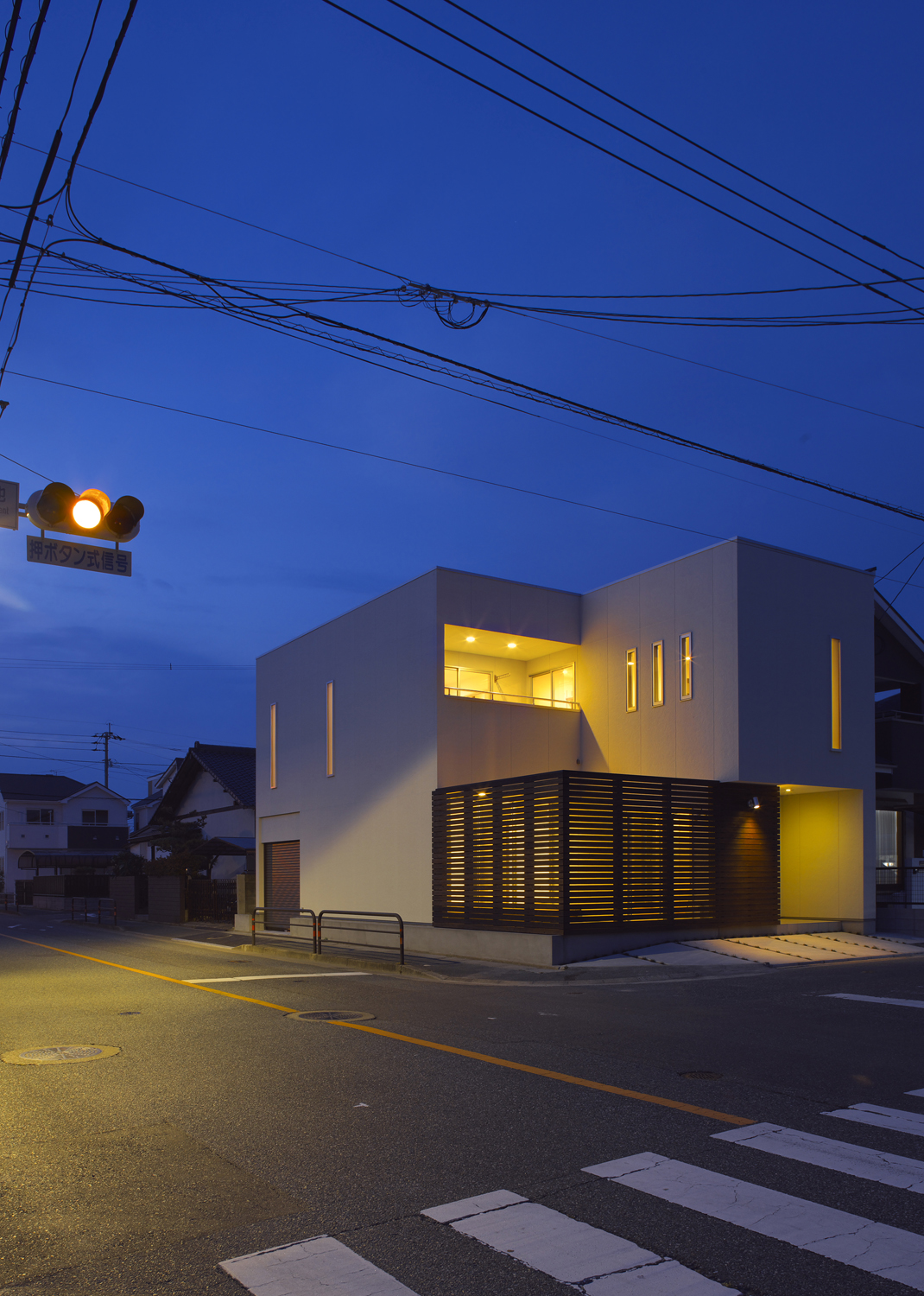 古い住宅地の大きな通りの交差点に面するこの建物は、若い二人が結婚を機に建てた住宅です。