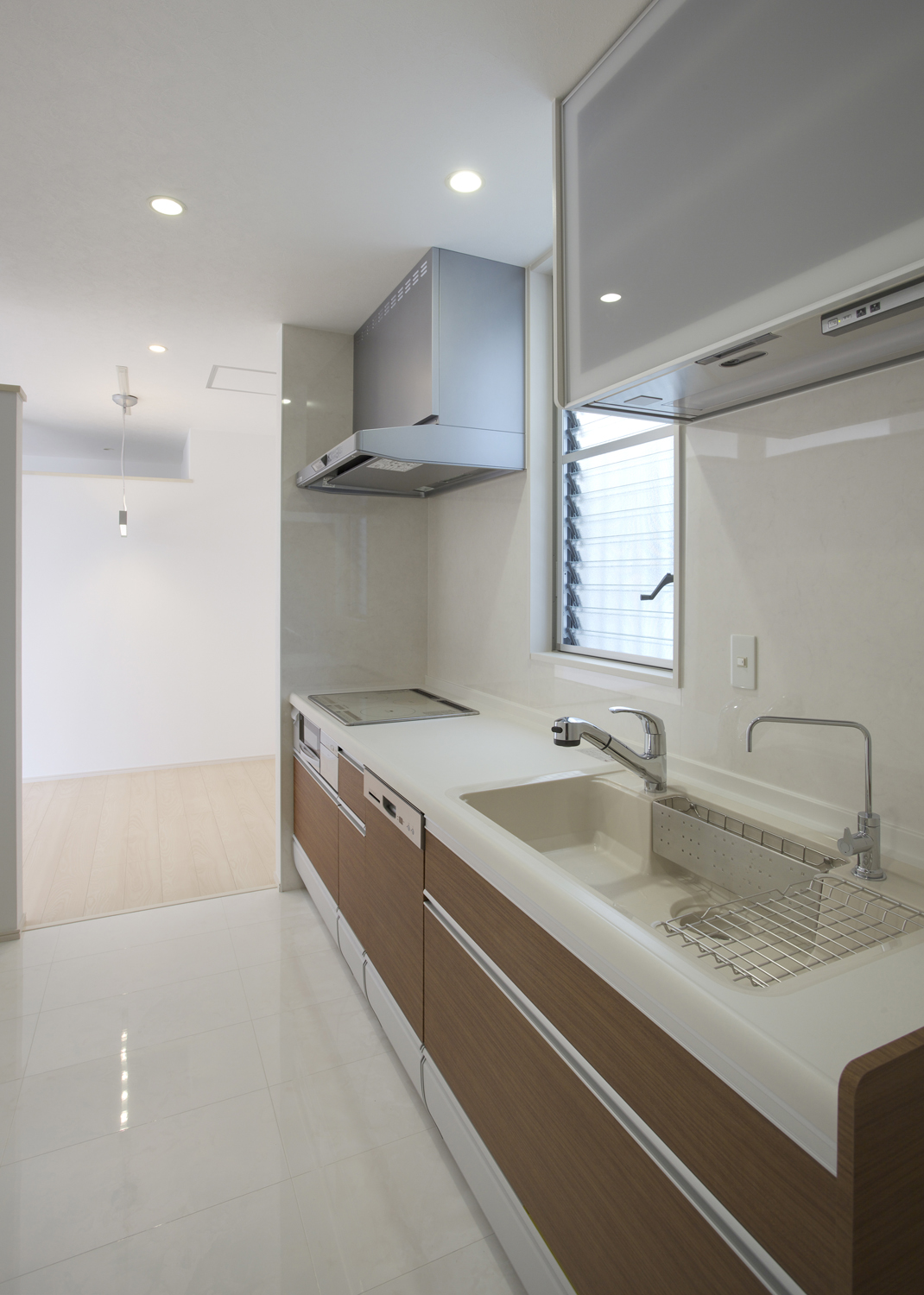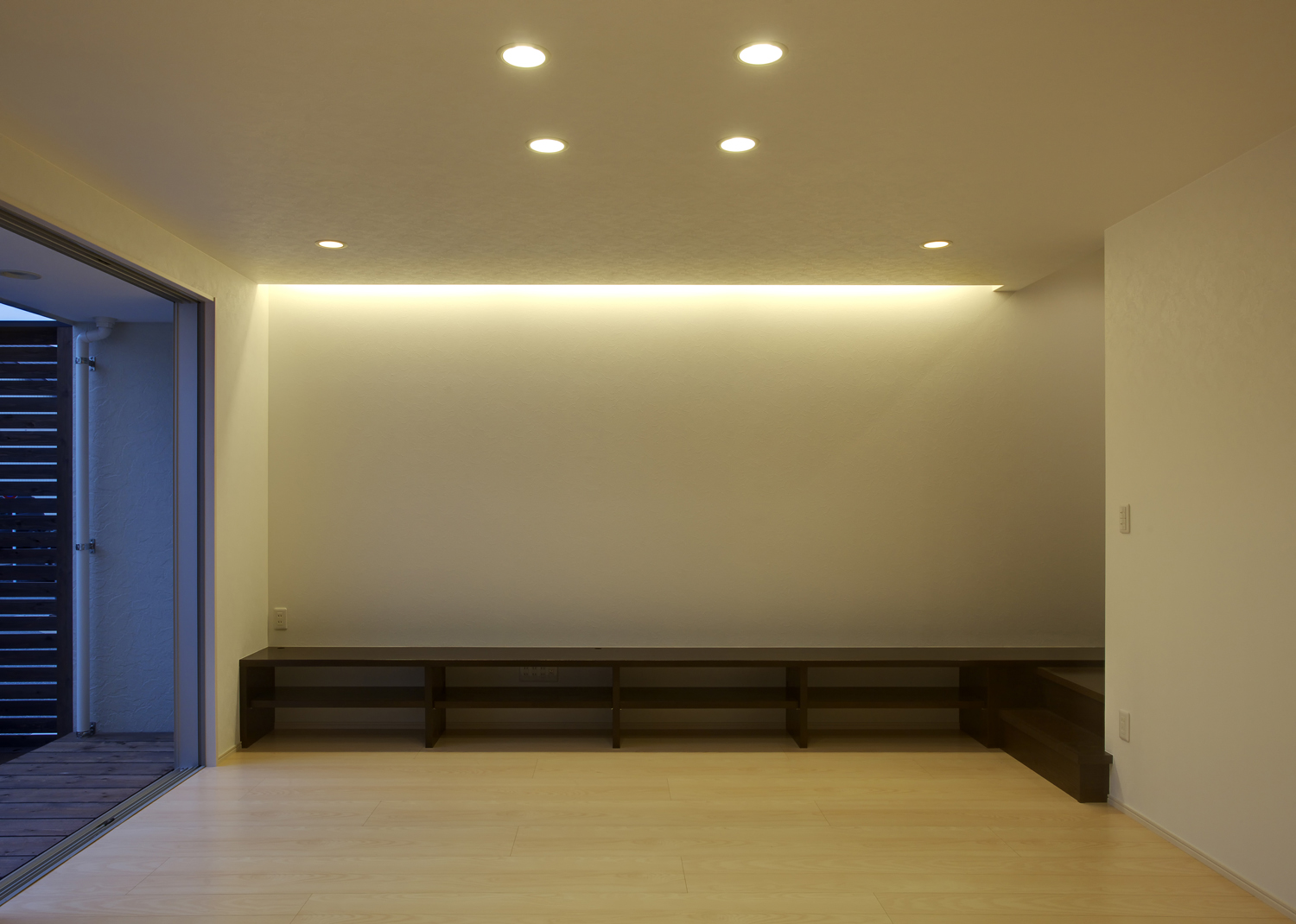 小さな敷地ですが、ビルトインのガレージに8帖ほどの広さの庭もあります。リビングは大きな窓とデッキで庭と一体に 繋がることでゆとりのある広々とした空間になっています。
